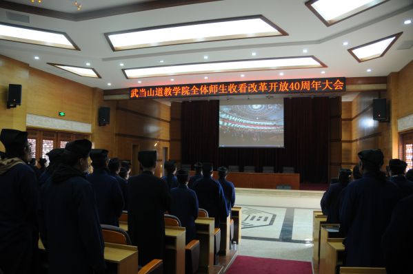 武當(dāng)山道教學(xué)院全體師生收看慶祝改革開(kāi)放四十周年大會(huì)實(shí)況直播