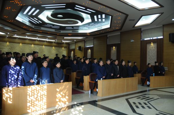 武當(dāng)山道教學(xué)院全體師生與慶祝大會(huì)一起全體起立唱國(guó)歌
