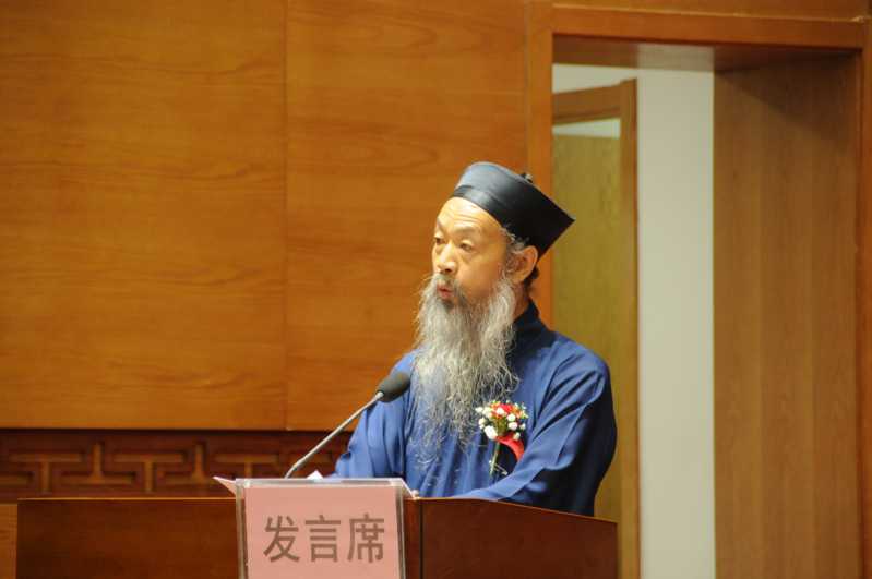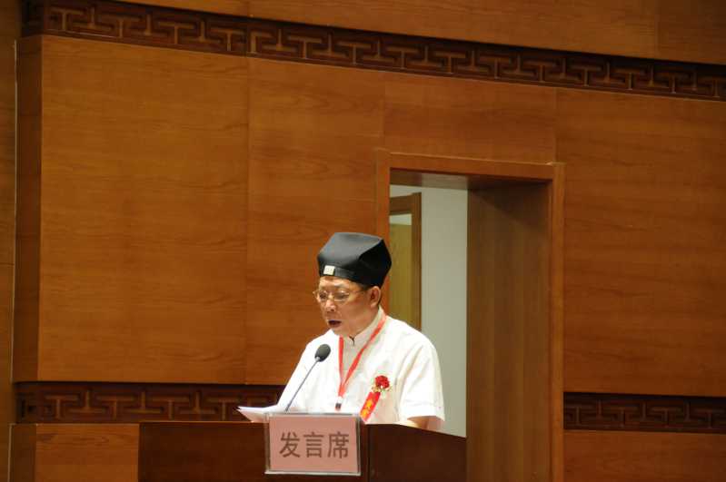 圖為:中國道教協(xié)會(huì)會(huì)長、武當(dāng)山道教協(xié)會(huì)會(huì)長、武當(dāng)山道教學(xué)院院長李光富在會(huì)上致辭