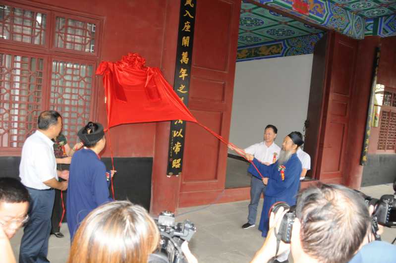 圖為:武當(dāng)山道教學(xué)院“湖北省道教人才培訓(xùn)基地”的揭牌儀式