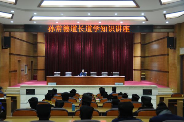 2018年12月8日,中國道教協(xié)會教務(wù)部主任孫常德道長來我院為本科班學(xué)員講解道學(xué)知識,講座上對大家所關(guān)心的道教教職人員認(rèn)定程序、師承法派、傳戒授箓、冠巾傳度、宮觀管理與當(dāng)代弘道的相關(guān)問題等方面進行了詮釋。孫常德道長話語形象生動有趣,學(xué)生聚精會神的聽講,一直到下課,學(xué)員們還依依不舍,深受學(xué)員們的喜愛。