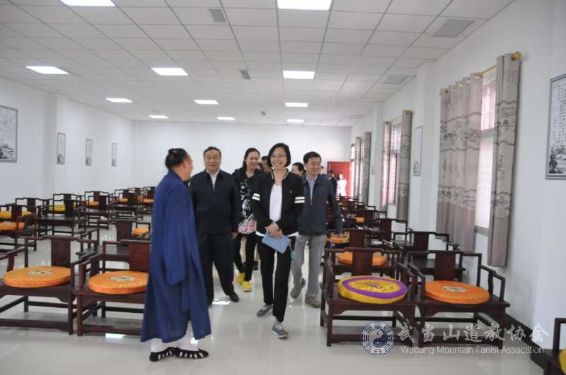 國宗局外事司司長肖虹一行數(shù)人參觀武當(dāng)山道教學(xué)院的靜功室。