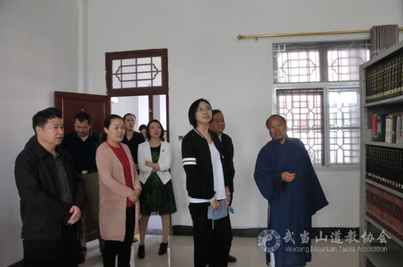國宗局外事司司長肖虹一行數(shù)人參觀武當(dāng)山道教學(xué)院的圖書館。