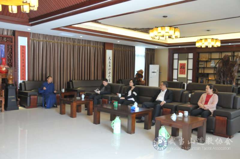 國宗局外事司司長肖虹一行數(shù)人聽取武當(dāng)山道教協(xié)會副會長、武當(dāng)山道教學(xué)院副院長劉文國的工作匯報。