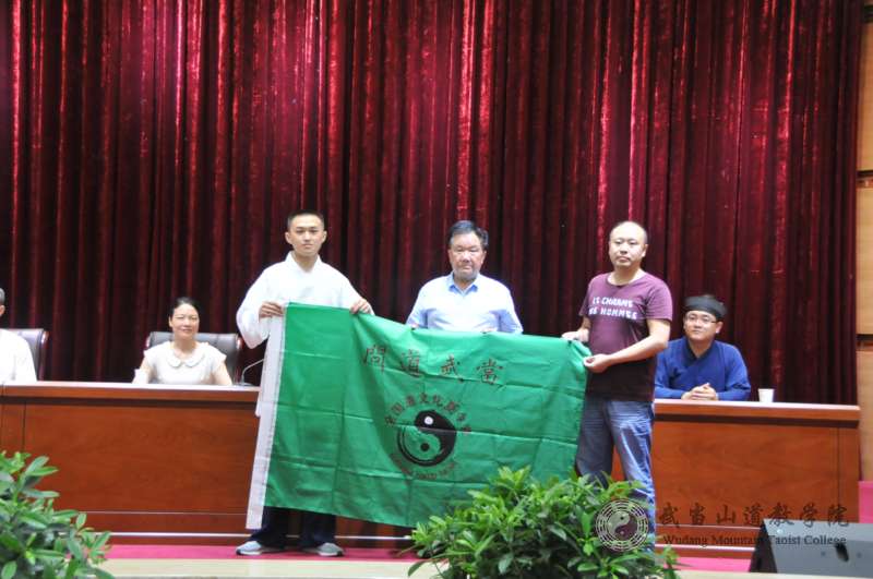 丹江口市民宗局副局長(zhǎng)鄭龍江和武當(dāng)山道教學(xué)院副院長(zhǎng)周作奎給2017“問(wèn)道武當(dāng)”道文化夏令營(yíng)代表授旗,標(biāo)志著道文化夏令營(yíng)活動(dòng)正式啟動(dòng)。