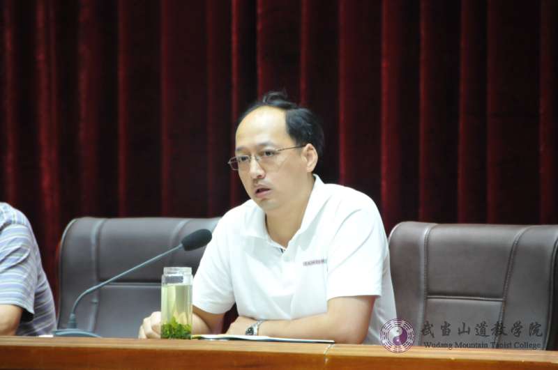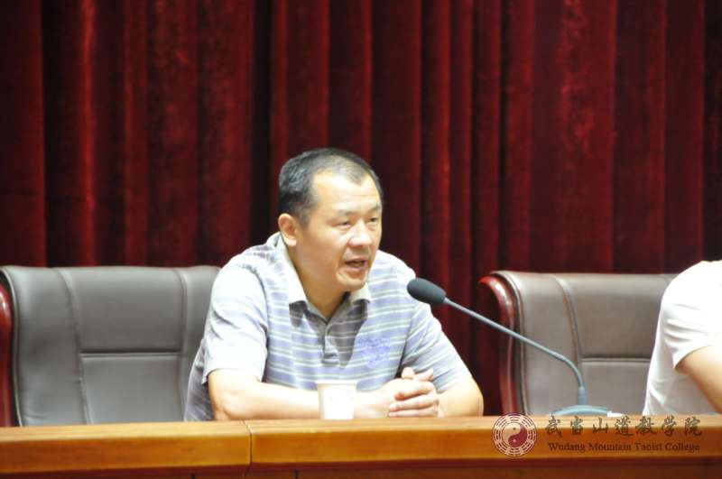 圖為武當(dāng)山道教學(xué)院副院長周作奎在開班儀式上發(fā)言。
