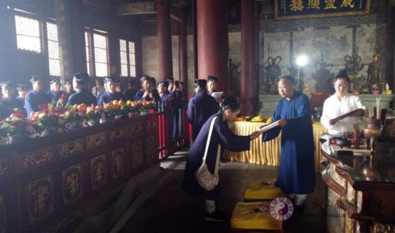 18日集體前往武當(dāng)山景區(qū)紫霄宮參訪。武當(dāng)山道教協(xié)會劉文國副會長、楊國英副會長代表協(xié)會熱情接見了學(xué)員們,并交談了此次參學(xué)體會和建議。武當(dāng)山道教協(xié)會經(jīng)懺班在紫霄大殿舉行了隆重的真武祖師大裱祈福法會,祈愿參加法會的學(xué)員以及兩岸民眾身心康泰、共沾神恩。并于大殿進行了莊嚴神圣的本屆研習(xí)班55位學(xué)員結(jié)業(yè)和對于22座宮觀的武當(dāng)山祖師分靈儀式。