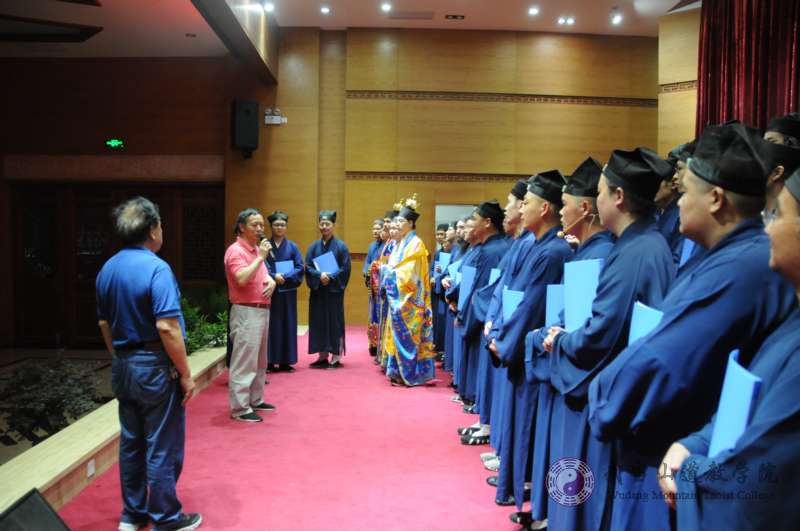2019年7月5日晚,武當(dāng)山道教學(xué)院慶祝祖國七十華誕暨首屆本科班畢業(yè)在武當(dāng)山道教學(xué)院禮堂舉行畢業(yè)晚會。中國道教協(xié)會會長、武當(dāng)山道教協(xié)會會長李光富道長,中國道教協(xié)會副會長、湖北省道教協(xié)會會長吳誠真道長,湖北省民宗委副主任熊華啟,十堰市民宗委副主任陳華,丹江口市委常委、統(tǒng)戰(zhàn)部部長魏波,市政協(xié)副主席紀(jì)道清,市民宗局,武當(dāng)山經(jīng)濟(jì)特區(qū)文宗局等領(lǐng)導(dǎo)代表及中國道教學(xué)院、上海道教學(xué)院、湖南南岳坤道學(xué)院、河北道教學(xué)院、四川青城山道教學(xué)院、浙江天臺山道教學(xué)院、福建海峽道教學(xué)院,漢江師范學(xué)院、湖北汽車工業(yè)學(xué)院等領(lǐng)導(dǎo)代表和武當(dāng)山道教學(xué)院全體師生近150人參加了畢業(yè)晚會。
