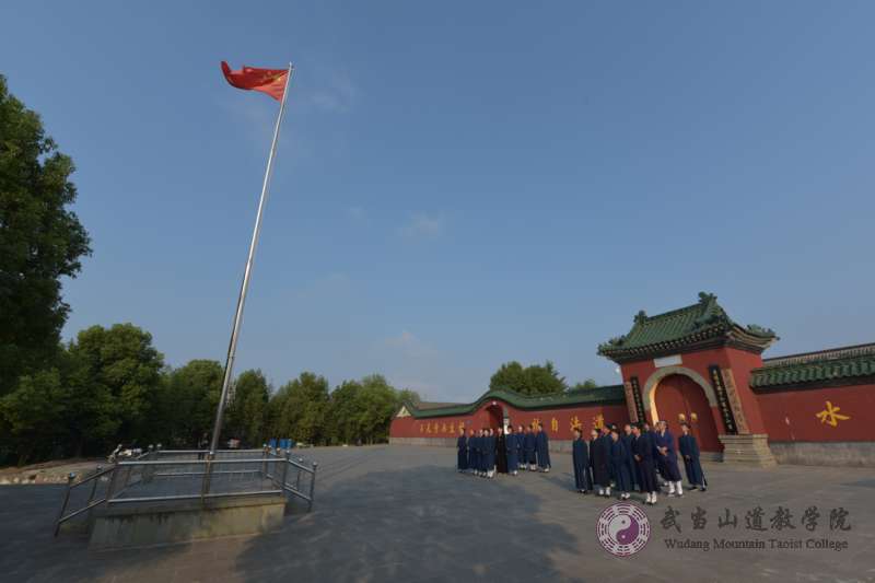 武當山道教學院紀念中國人民抗日戰(zhàn)爭的偉大勝利舉行升國旗儀式