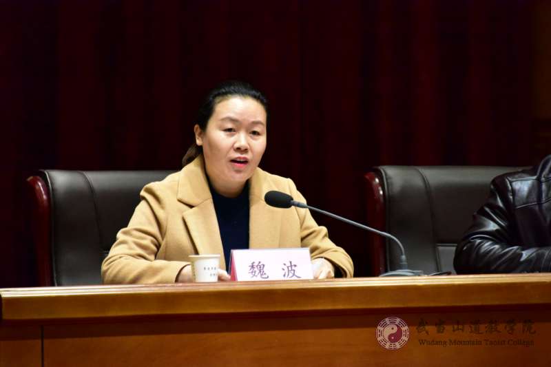 2019年11月22日,丹江口市委常委、統(tǒng)戰(zhàn)部部長魏波在我院舉行的“十堰道協(xié) 武當(dāng)山道協(xié)學(xué)習(xí)中共十九屆四中全會精神培訓(xùn)班”上,傳達(dá)了黨的十九屆四中全會精神,會議上魏波部長指出武當(dāng)山道教道教學(xué)院在正值全黨全國上下興起深入學(xué)習(xí)宣傳貫徹黨的十九屆四中全會精神熱潮之際,舉辦“十堰市道教協(xié)會、武當(dāng)山道教協(xié)會2019年學(xué)習(xí)十九屆四中全會精神培訓(xùn)班”,是十堰市道教屆堅持宗教中國化方向、愛國愛教的表現(xiàn),同時希望道教屆人士加強(qiáng)思想政治建設(shè),一要做新時代宗教政策的宣傳者,樹牢“四個意識”,堅定做到“兩個維護(hù)”。加強(qiáng)對習(xí)近平總書記關(guān)于宗教工作的重要論述、《宗教事務(wù)條例》、《憲法》等宗教法律法規(guī)的學(xué)習(xí)。二要做宗教工作法制化的示范者,必須堅持國法大于教規(guī),不斷提高宗教團(tuán)體內(nèi)部管理科學(xué)化、規(guī)范化、法制化水平。三要做宗教中國化方向的踐行者,堅持道教中國化方向,學(xué)習(xí)貫徹習(xí)近平新時代中國特色社會主義思想,落實(shí)好黨中央對宗教工作的各項(xiàng)決策部署。不斷推進(jìn)道教與時俱進(jìn),創(chuàng)新道教教義思想,更好地適應(yīng)新社會、服務(wù)新時代。堅持用社會主義核心價值觀教育教職人員和信教群眾,發(fā)揚(yáng)道教教義中有利于社會和諧、時代進(jìn)步、健康文明的內(nèi)容,做出符合當(dāng)代中國發(fā)展進(jìn)步要求、符合中華優(yōu)秀傳統(tǒng)文化的闡釋,推動道教在中國化道路上不斷取得新成績。
