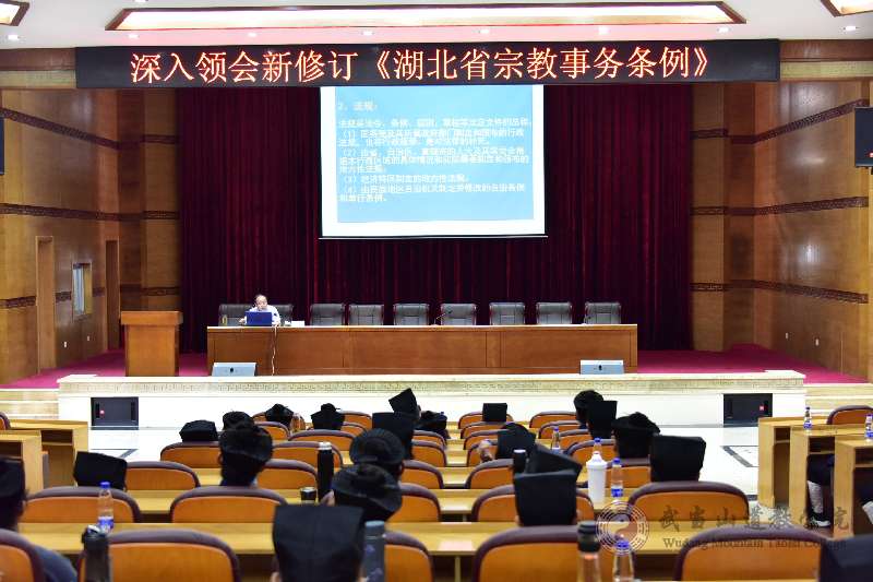 2020年9月16日上午,湖北省民族宗教委員會一級調(diào)研員趙志宏在我院舉行“2020級本科新生開學(xué)典禮”之際,宣講新修訂《湖北省宗教事務(wù)條例》。講座上趙志宏詳細(xì)詮釋了湖北省宗教事務(wù)條例內(nèi)涵,強調(diào)道學(xué)院同學(xué)們要深入領(lǐng)會《湖北省宗教事務(wù)條例》,提高政治覺悟,堅持道教中國化方向,加強宗教法制化觀念,不斷提高學(xué)法用法水平,提升道教自理能力,打造新時代合格教職人員隊伍。
