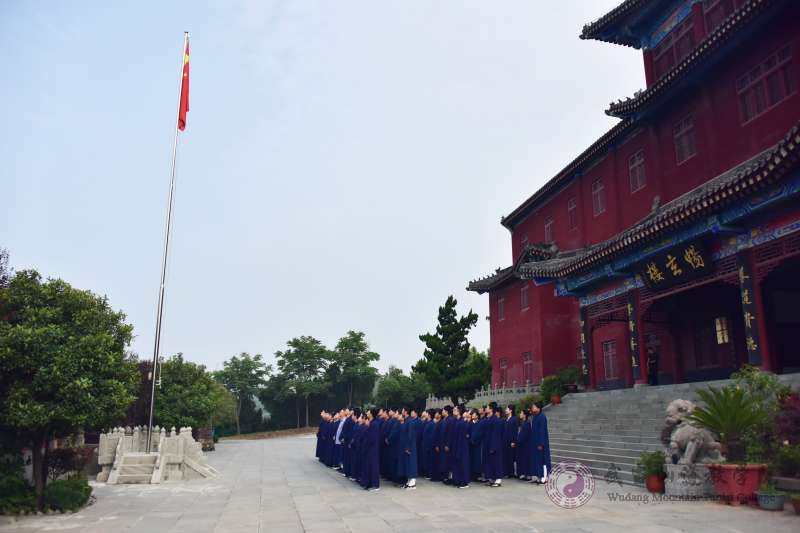 武當(dāng)山道教學(xué)院全院師生、教職員工舉行升國(guó)旗、唱國(guó)歌儀式