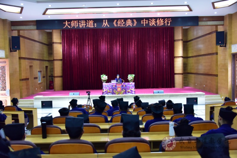 2021年9月17日,武當(dāng)山道教學(xué)院恭請(qǐng)湖北省道教協(xié)會(huì)會(huì)長(zhǎng)吳誠(chéng)真方丈為武當(dāng)山道教學(xué)院新生開示,講道的主題是“從經(jīng)典中談修行”,從道教經(jīng)典中講愛國(guó)、講修行。