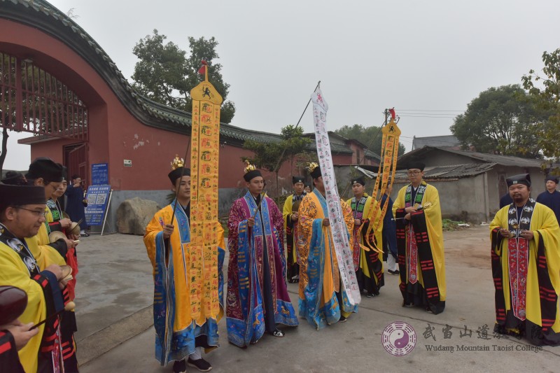 武當山道教學院學員依照道教傳統(tǒng),本著濟度眾生的宗旨,舉辦“寒衣節(jié)超度法會”,建九幽齋筵,奉請?zhí)揖瓤嗵熳?,宣太上妙法,引渡眾孤魂解冤釋結、往生,賑濟三途之苦,為十方孤魂送去過冬的衣服。