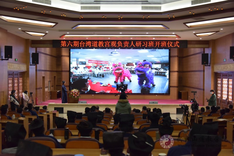 2021年11月9日,武當(dāng)山道教學(xué)院舉辦第六期臺(tái)灣道教宮觀(guān)負(fù)責(zé)人研習(xí)班,湖北省臺(tái)辦主任莊光明、副主任邢軍志,十堰市委常委沈?qū)W強(qiáng),武當(dāng)山道教協(xié)會(huì)會(huì)長(zhǎng)、武當(dāng)山道教學(xué)院常務(wù)副院長(zhǎng)劉文國(guó)、武當(dāng)山道教學(xué)院副院長(zhǎng)葛立剛及臺(tái)灣各道教宮觀(guān)的50余名學(xué)員在臺(tái)灣分會(huì)場(chǎng)參加了此次活動(dòng)。