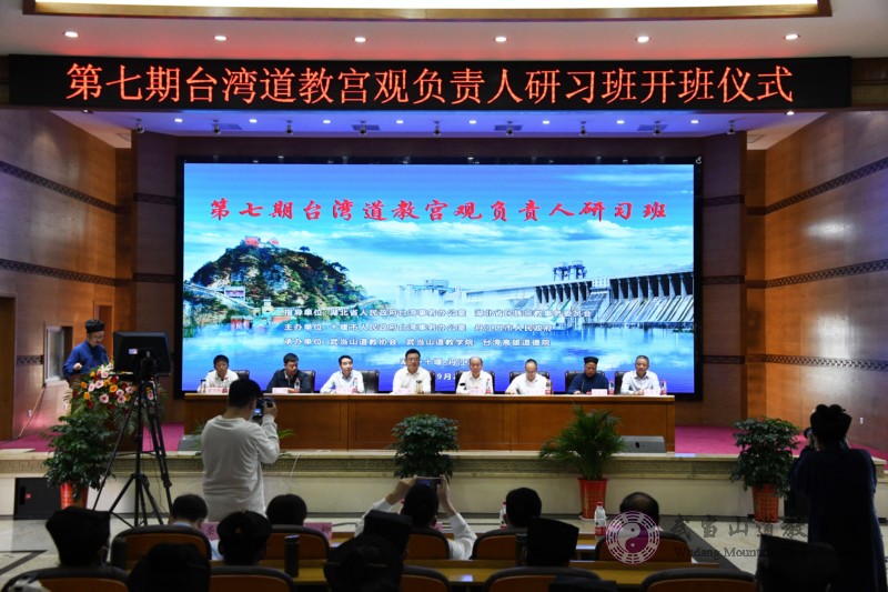 2022年9月28日,武當(dāng)山道教學(xué)院(線上)舉辦第七期臺灣道教宮觀負責(zé)人研習(xí)班,湖北省臺辦副主任邢軍志,湖北省民宗委副主任趙軍章,湖北省臺辦交流處處長于建福,十堰市委常委張濤,十堰市民宗委吳峰,十堰市臺辦主任張大勇,丹江口市委副書記、市長武小凱,丹江口市委統(tǒng)戰(zhàn)部副部長、民宗局局長武大軍,武當(dāng)山道教協(xié)會會長、武當(dāng)山道教學(xué)院院長劉文國,臺灣道行天下文化促進會會長劉鴻樺,臺灣中華民族發(fā)展基金會董事長、?;鶗麻L林中森,臺灣高雄道德院等相關(guān)部門領(lǐng)導(dǎo)出席,開班儀式由武當(dāng)山道教學(xué)院常務(wù)副院長葛立剛主持。