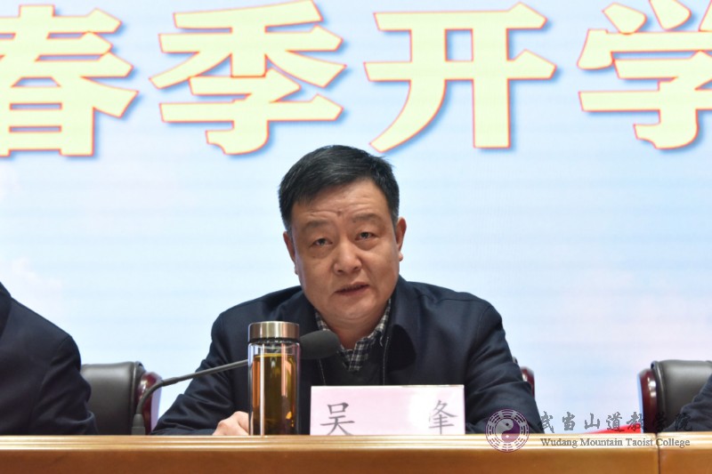 在新學(xué)期開學(xué)典禮上,武當(dāng)山道教協(xié)會會長、武當(dāng)山道教學(xué)院院長劉文國指出,新年伊始,萬象更新,新的學(xué)期,新的藍(lán)圖、新的要求,同學(xué)們要把心收回來,樹立正確的學(xué)習(xí)觀和思想觀。
