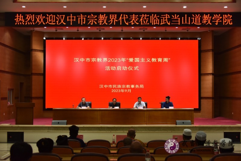 2023年9月12日下午,漢中市民宗局帶領(lǐng)宗教界代表團(tuán)一行33人來武當(dāng)山道教學(xué)院參訪,并舉行了漢中市宗教界2023年“愛國主義教育周”活動(dòng)啟動(dòng)儀式。丹江口市委統(tǒng)戰(zhàn)部副部長、民宗局局長武大軍、武當(dāng)山道教學(xué)院常務(wù)副院長葛立剛熱情接待了參訪團(tuán)。