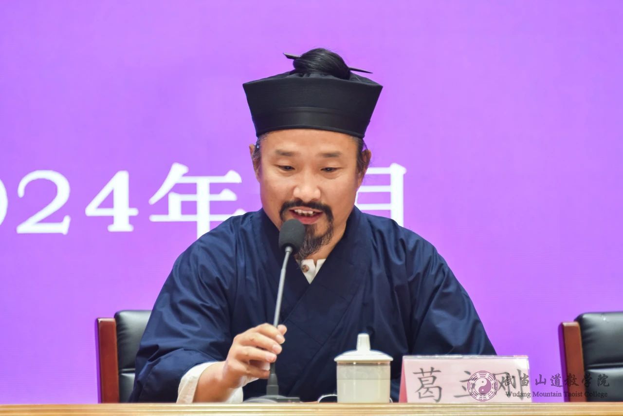 武當(dāng)山道教學(xué)院常務(wù)副院長(zhǎng)葛立剛發(fā)表致辭,勉勵(lì)同學(xué)們要牢記學(xué)道初心,珍惜學(xué)習(xí)機(jī)會(huì),樹(shù)立崇高志向,刻苦學(xué)習(xí),尊道貴德,服務(wù)社會(huì),實(shí)現(xiàn)人生價(jià)值。他鼓勵(lì)同學(xué)們將個(gè)人修行與國(guó)家發(fā)展緊密結(jié)合,為道教的傳承與發(fā)展貢獻(xiàn)自己的力量。