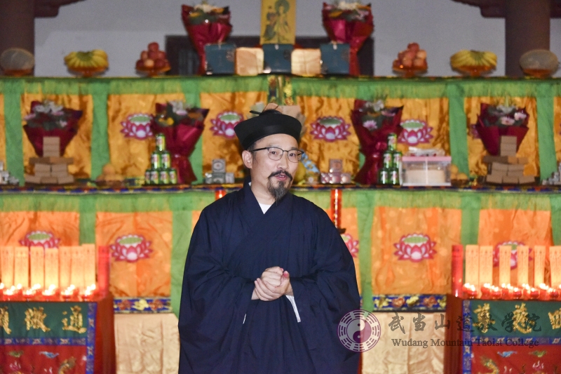 是日夜晚七時,明月自山巔徐升,清輝遍灑學院。玄門講堂內,供桌巍巍,華蓋高擎,鮮花簇擁,月餅飄香,道韻繚繞,磬魚齊鳴。