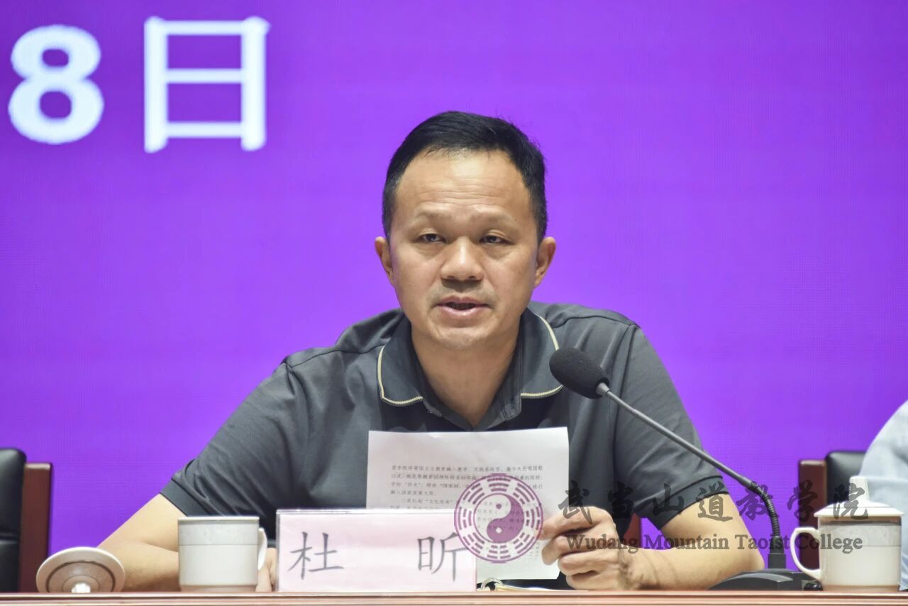 丹江口市委統(tǒng)戰(zhàn)部常務(wù)副部長(zhǎng)杜昕在講話中肯定了學(xué)院各項(xiàng)工作,強(qiáng)調(diào)要繼續(xù)堅(jiān)持愛(ài)國(guó)愛(ài)教優(yōu)良傳統(tǒng),將愛(ài)國(guó)主義教育全面融入教學(xué)實(shí)踐;要切實(shí)扛起文化傳承使命,深化武當(dāng)文化研究,推動(dòng)優(yōu)秀傳統(tǒng)文化薪火相傳;要嚴(yán)守規(guī)范辦學(xué)底線,堅(jiān)持我國(guó)宗教中國(guó)化方向,筑牢校園安全防線。